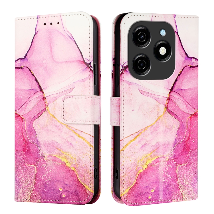 Funda de Cuero con Tapa para Tecno Spark 20 Pt003 con Patrón de Mármol (Rosa, Morado y Dorado)