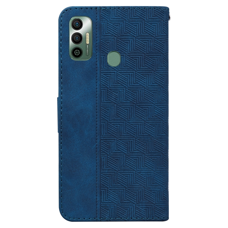 Caja de Cuero Geométrico en Relieve para Tecno Spark 7 (Azul)