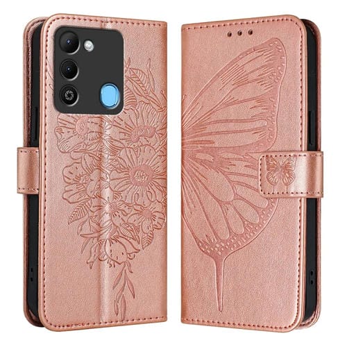 Funda de Cuero para Tecno Spark 9 con Mariposa en Relieve (Oro Rosa)