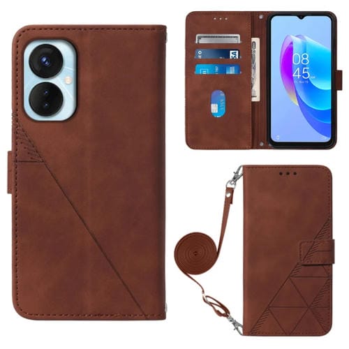 Funda de Cuero con Tapa para Tecno Spark 9 Pro y Spark 9T Crossbody 3D (Marrón)