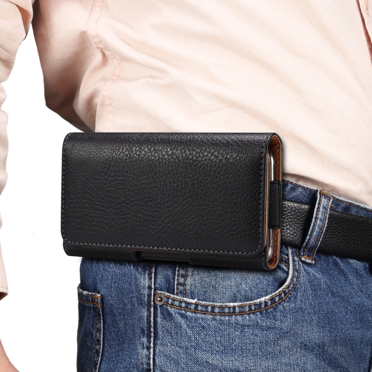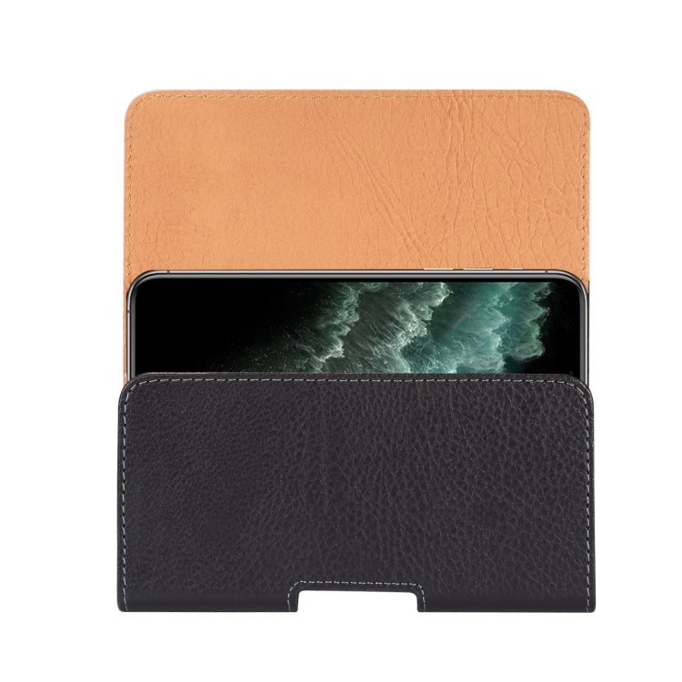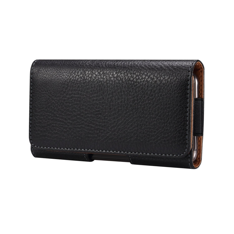 For 6.2-6.5 inch phone Litchi texture Iron clip Back buckle Waist-mounted phone case Horizontal plate (black)