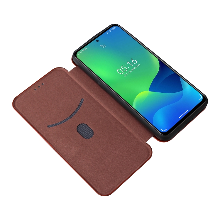 Funda para Ulefone Note 13P Fibra de Carbono Textura Magnético Horizontal Flip PU (Marrón)