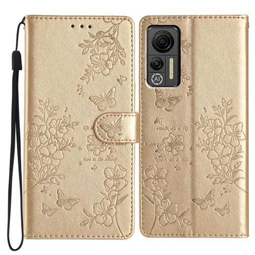 Funda para Ulefone Note 14 de Cuero con Relieve de Flor y Mariposa (Dorado)