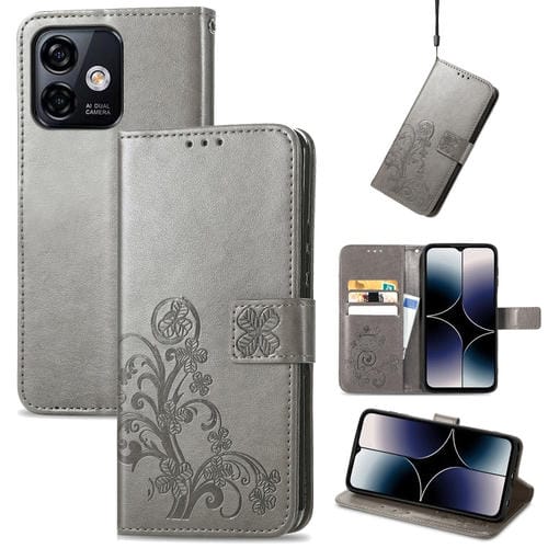Estuche para Ulefone Note 16 Pro de Cuero con Hebilla y Cierre de Cuatro Hojas (Gris)