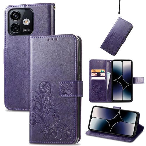 Estuche para Ulefone Note 16 Pro de Cuero con Hebilla en Relieve y Cierre de Cuatro Hojas (Púrpura)