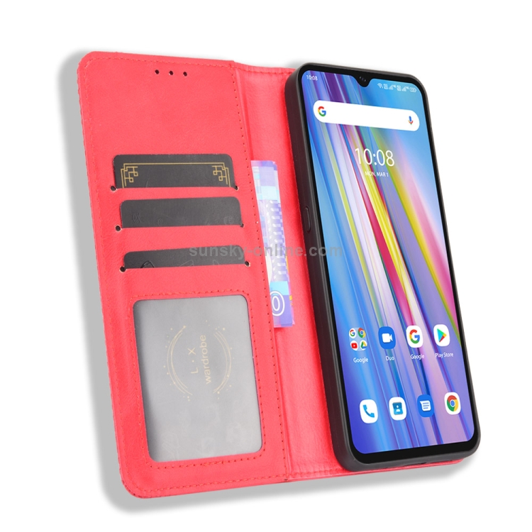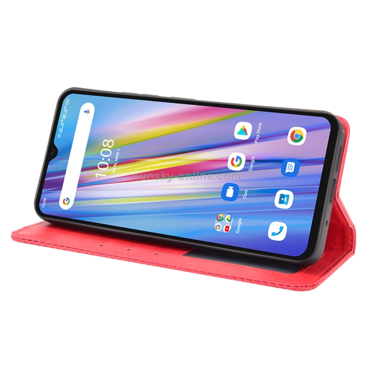 Funda de Cuero para Umidigi A11 con Hebilla Magnética, Soporte, Ranuras y Marco de Fotos (Rojo)