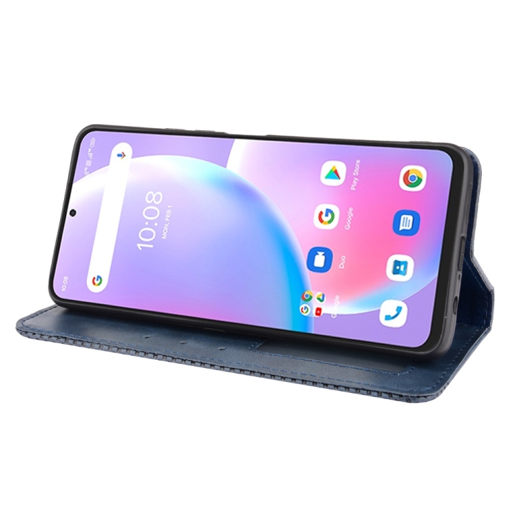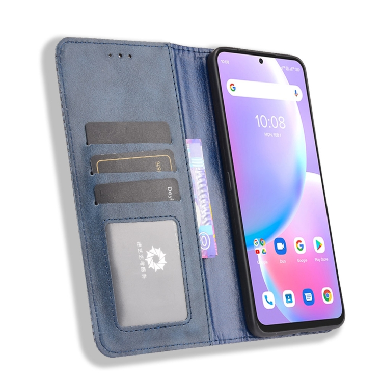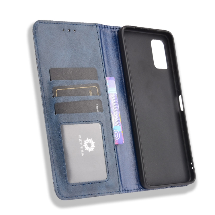 Funda de Cuero para Umidigi A11 Pro Max con Hebilla Magnética, Textura Crazy Horse, Soporte, Ranuras y Marco de Fotos (Azul)