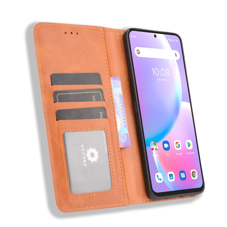 Funda de Cuero para Umidigi A11 Pro Max con Hebilla Magnética, Soporte, Ranuras para Tarjetas y Marco de Fotos (Marrón)