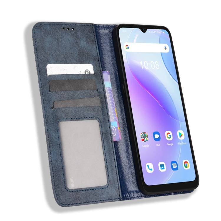Funda para Umidigi A11S con Hebilla Magnética Retro y Textura de Cuero (Azul)