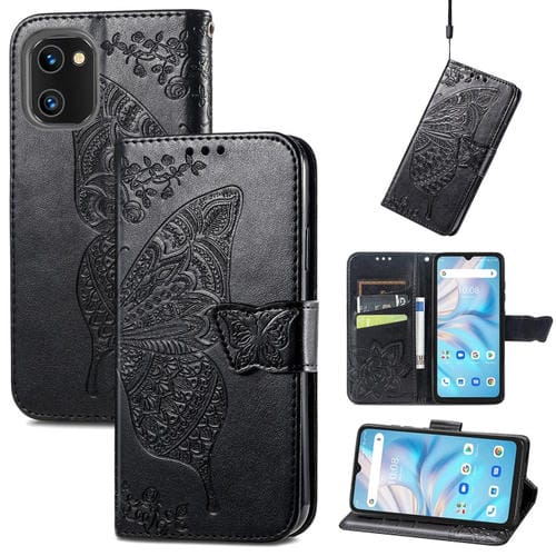 Funda para Umidigi A13S Butterfly Love Flower de Cuero en Relieve (Negro)