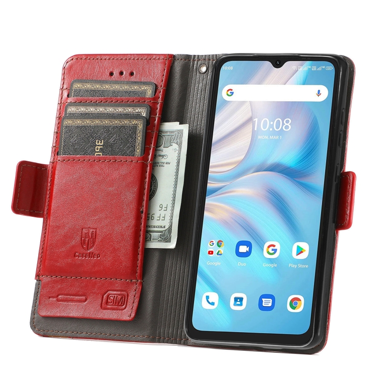 Funda de Cuero Caseneo para Umidigi A13S con Hebilla Magnética Dual (Rojo)