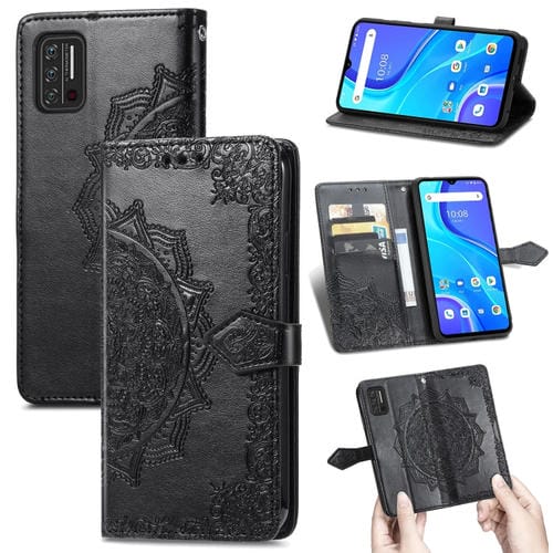 Funda de Cuero para Umidigi A7S Mandala Flower Horizontal con Soporte, Trilladas y Cordón (Negro)