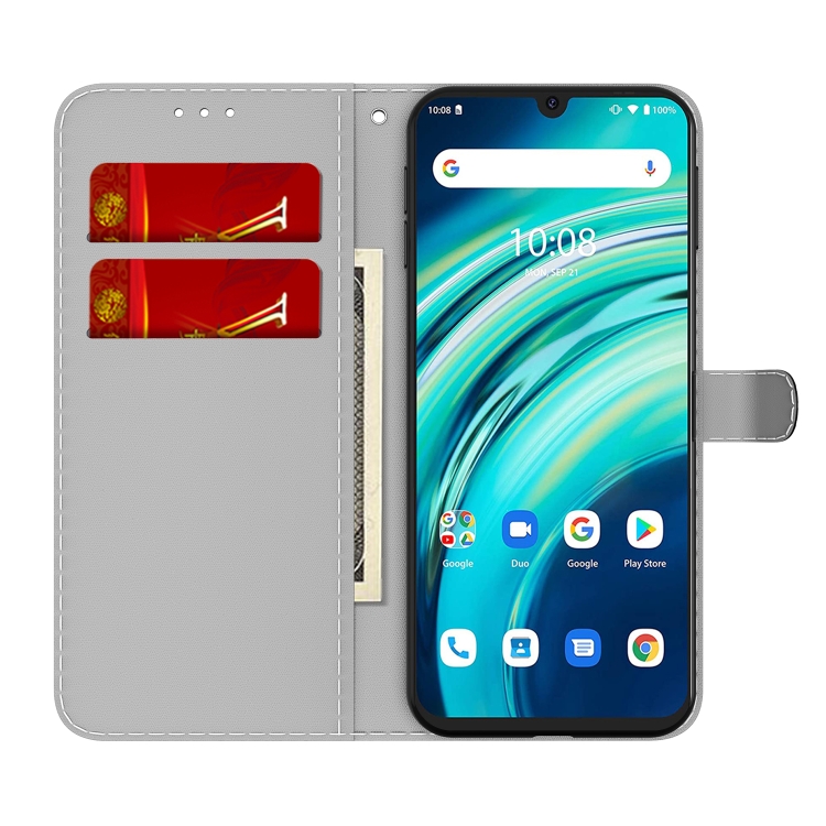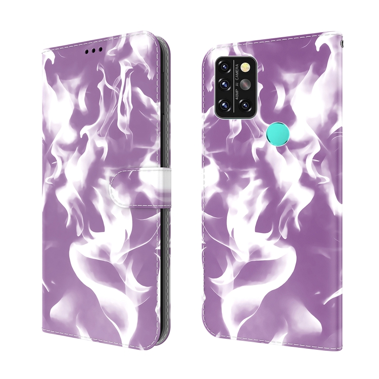 Funda de Cuero para Umidigi A9 Pro Cloud Fog Stattern con Soporte y Ranura para Tarjeta y Billetera (Púrpura)