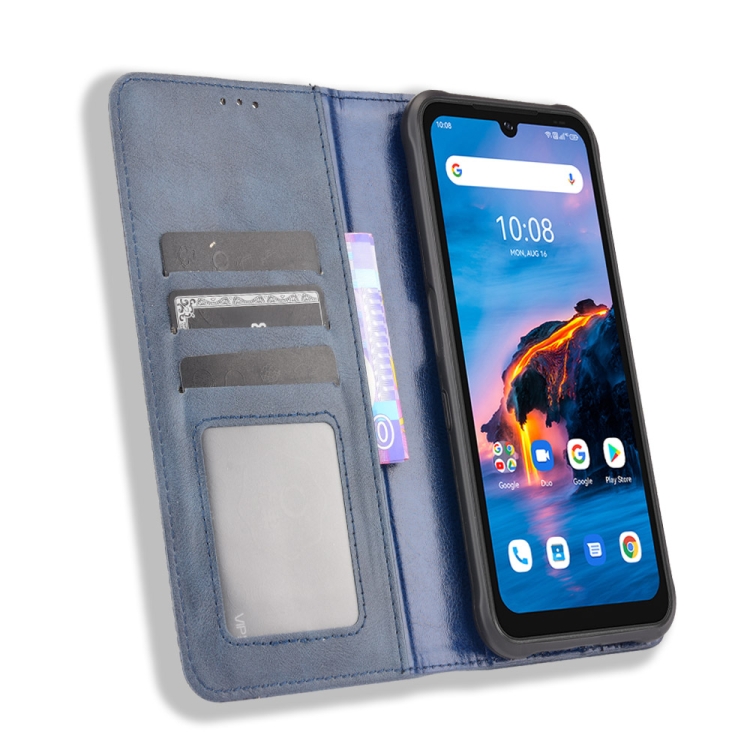 Funda de Cuero para Umidigi Bison Pro con Hebilla Magnética, Soporte, Ranura para Tarjeta y Billetera (Azul)