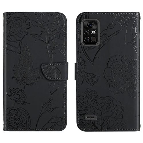 Funda de Cuero para Umidigi Bison Pro con Relieve de Peonía y Mariposa (Negro)