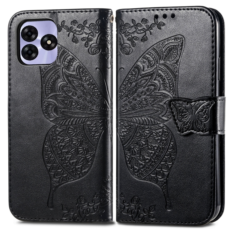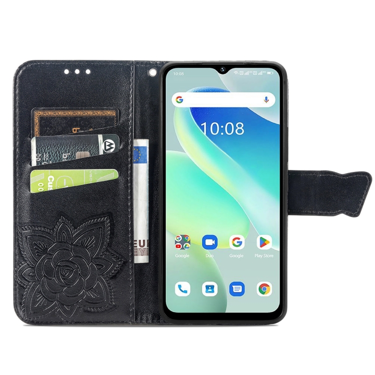 Funda de Cuero Umidigi G5 Butterfly Love Flower en Relieve para Teléfono (Negro)