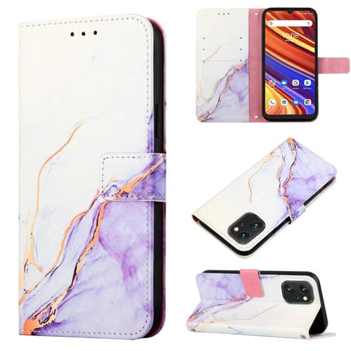 Funda de Teléfono Umidigi Power 7 Power 7S Pt003 Tapa de Cuero Patrón Mármol (Blanco Púrpura)