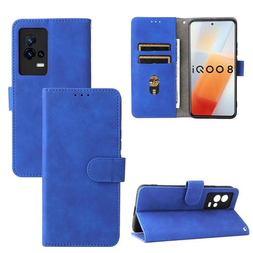 Para Vivo Iqoo 8 Color Sólido Siente la Piel Hebilla Magnética Horizontal Flip Texture Texture Pu Funda de Cuero con Soporte y Ranuras para Tarjetas (Azul)