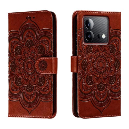 Para Vivo Iqoo Neo8 Sun Mandala Funda de Cuero para Teléfono con Patrón En Relieve (Marrón)