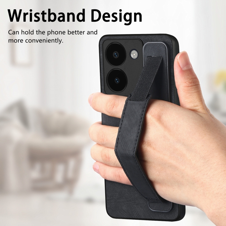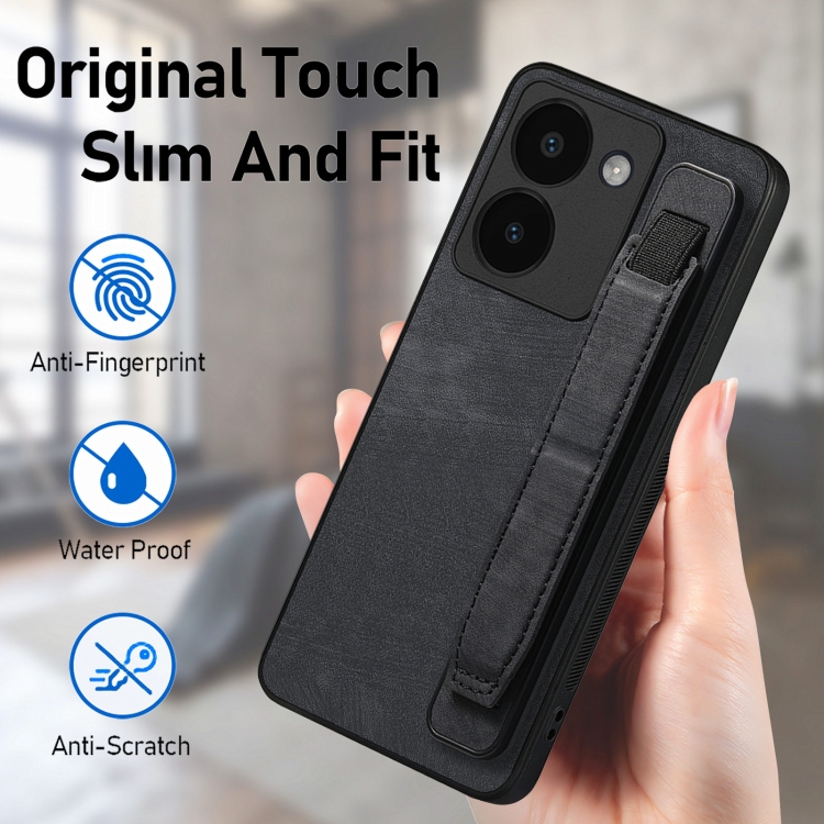 Para Vivo S16 / V27 Funda Trasera de Cuero con Soporte para Pulsera Retro (Negro)