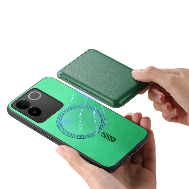 Para Vivo S17E Retro Magsafe Card Bag Pu Funda para Teléfono con Contraportada (Verde)