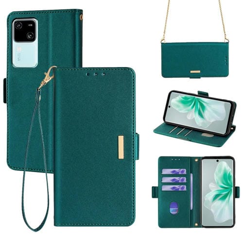 Para Vivo S18 5G / S18 Pro 5G Funda de Cuero para Teléfono con Cadena Cruzada (Verde)