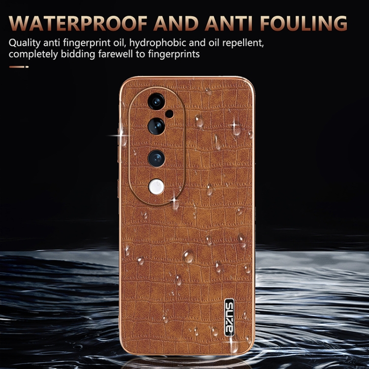 Para Vivo S19 Pro Azns Estuche para Teléfono con Textura de Cocodrilo y Marco Galvanizado (Marrón)