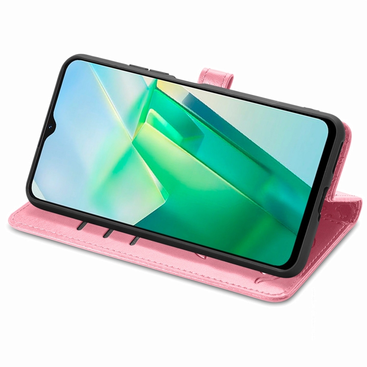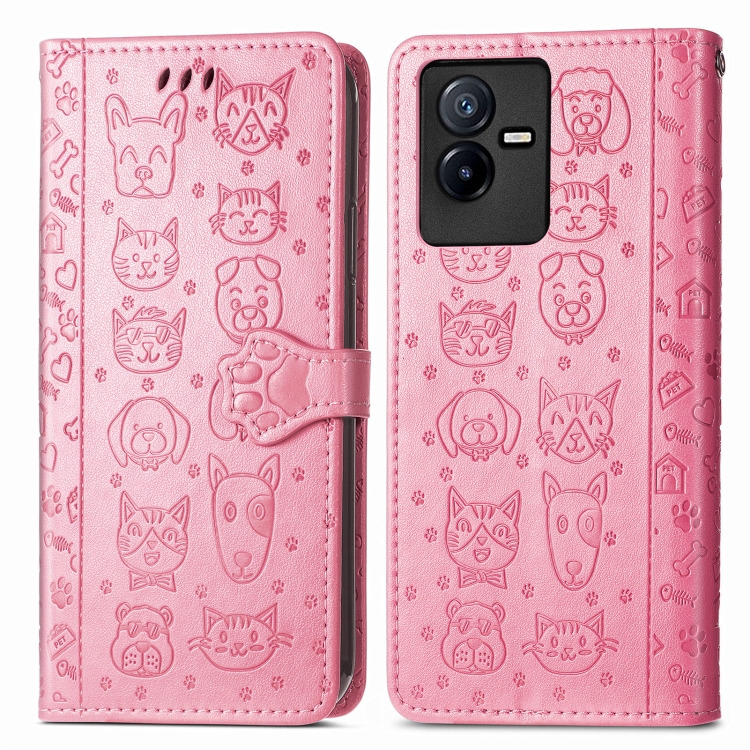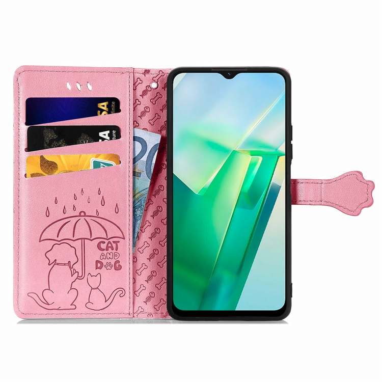 Para Vivo T2X Cute Cat And Dog Estuche de Cuero En Relieve para Teléfono (Rosa)
