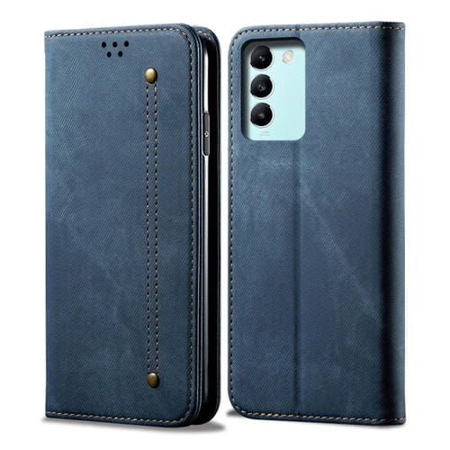 Para Vivo T3 / Y200E / Y100 Idn Funda para Teléfono de Cuero con Tapa con Textura Vaquera (Azul)