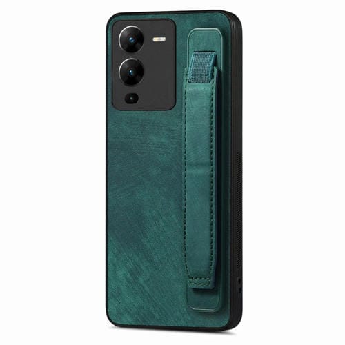 Para Vivo V25 Pro Retro Muñequera Funda Trasera de Cuero para Teléfono (Verde)