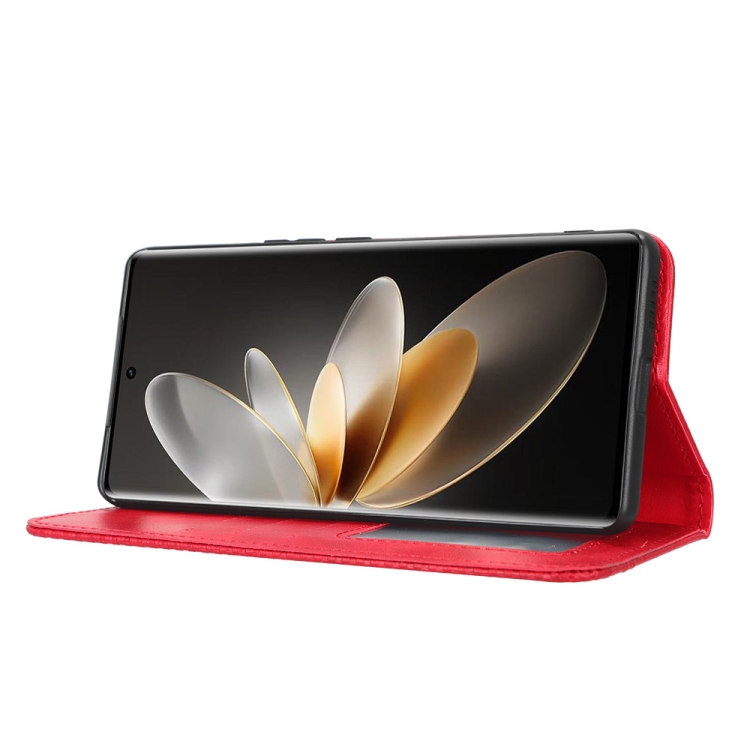 Para Vivo V27 / V27 Pro / S16 / S16 Pro Hebilla Magnética Textura Retro Funda de Cuero para Teléfono (Rojo)