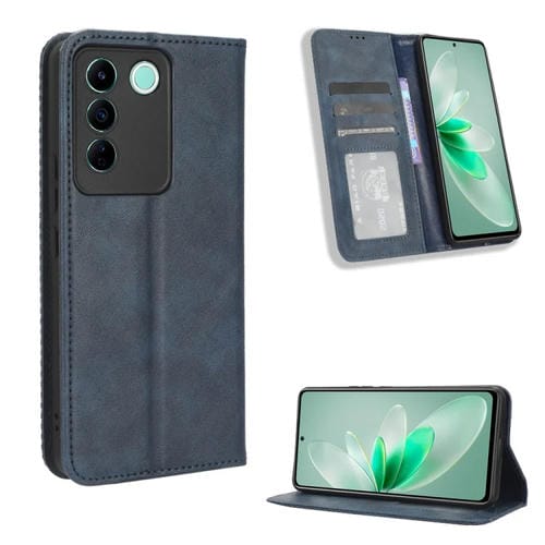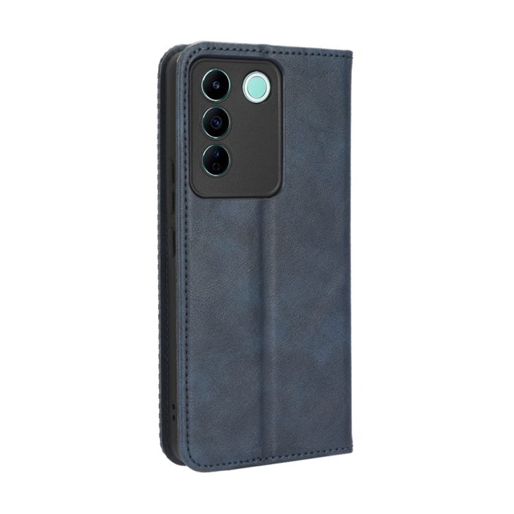 Para Vivo V27E / S16E Hebilla Magnética Textura Retro Funda de Cuero para Teléfono (Azul)