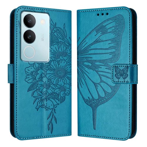 Para Vivo V29 5G Global / V29 Pro Funda de Cuero para Teléfono con Mariposa En Relieve (Azul)