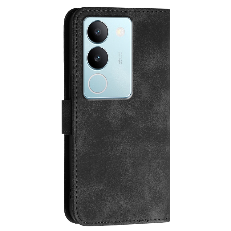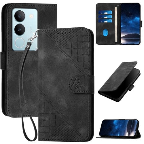 Para Vivo V29 5G Global Yx0080 Grid Butterfly Patrón En Relieve Funda de Cuero con Tapa para Teléfono con Cordón (Negro)