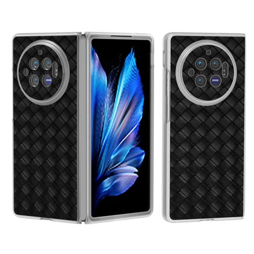 Para Vivo X Fold3 Funda para Teléfono de Pu con Marco Translúcido Esmerilado con Textura Tejida (Negro)