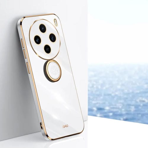Para Vivo X100S Xinli Straight 6D Plating Gold Edge TPU Funda a Prueba de Golpes con Soporte para Anillo (Blanco)