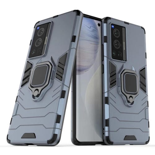 Para Vivo X70 Pro a Prueba de Golpes PC + Funda Protectora TPU con Soporte de Anillo Magnético (Azul Marino)