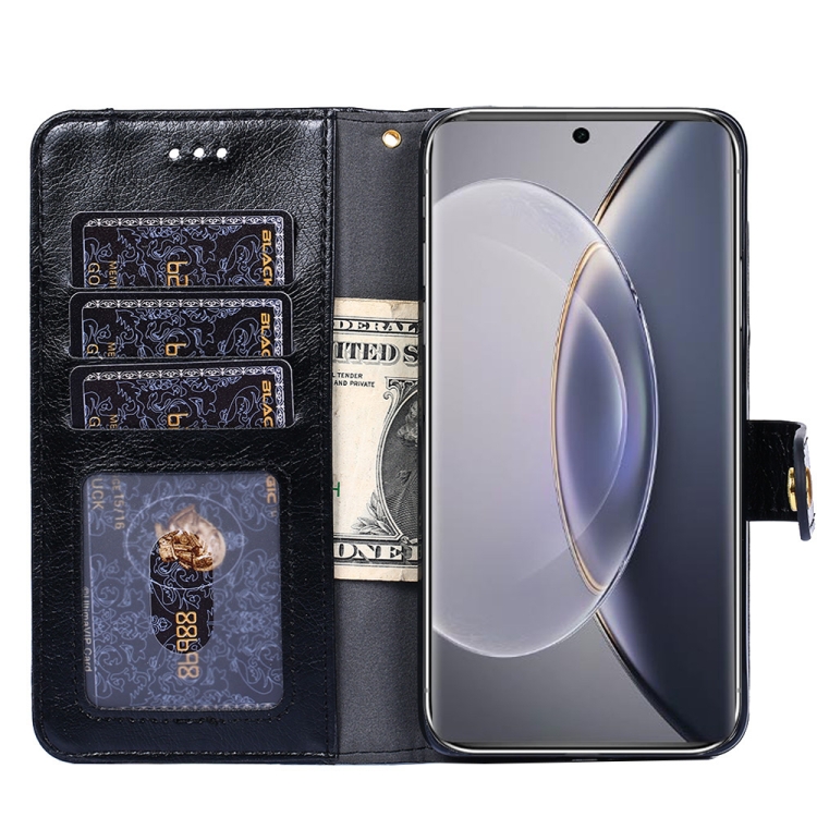 Para Vivo X90 Pro 5G Funda de Cuero con Cremallera para Teléfono (Negro)
