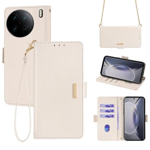 Para Vivo X90 Pro Funda de Cuero para Teléfono con Cadena Cruzada (Blanco)