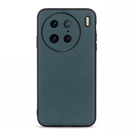 Para Vivo X90 Pro Funda de Teléfono de Cuero Genuino con Textura de Piel de Cordero con Orificio Preciso (Verde)