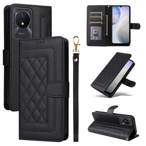 Para Vivo Y02 Diamond Lattice Funda de Cuero para Teléfono con Tapa (Negro)