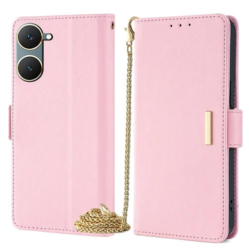 Para Vivo Y03 4G Funda de Cuero para Teléfono con Cadena Cruzada (Rosa)
