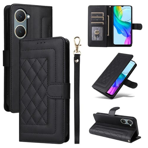 Para Vivo Y03 Diamond Lattice Funda de Cuero para Teléfono con Tapa (Negro)