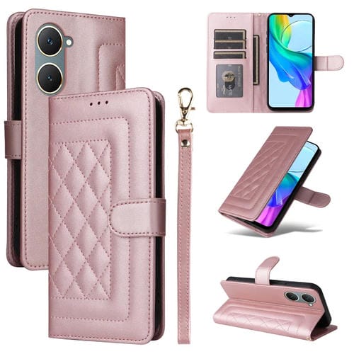 Para Vivo Y03 Diamond Lattice Funda para Teléfono con Tapa de Cuero (Oro Rosa)