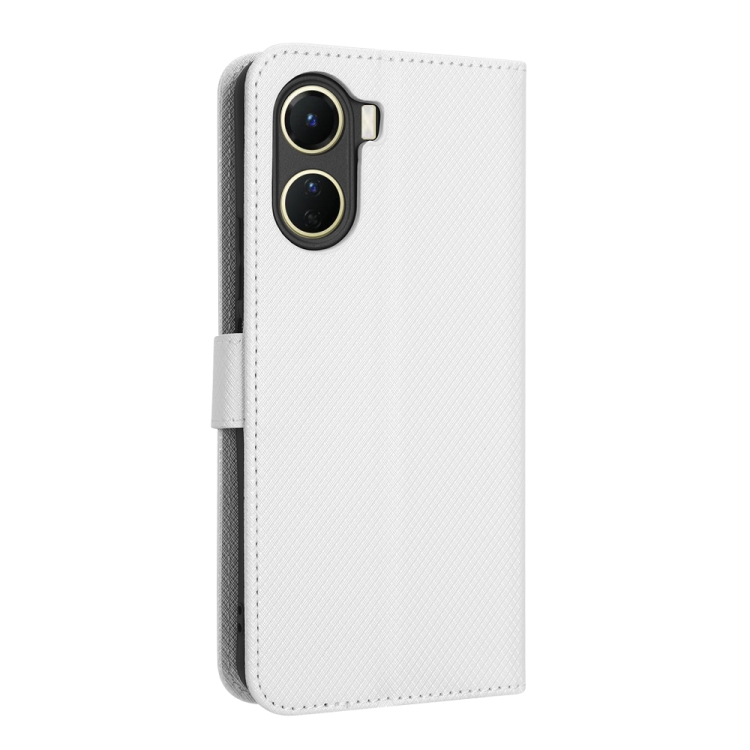 Para Vivo Y16 / Iqoo Z7I Caja del Teléfono de Cuero con Textura de Diamante (Blanco)