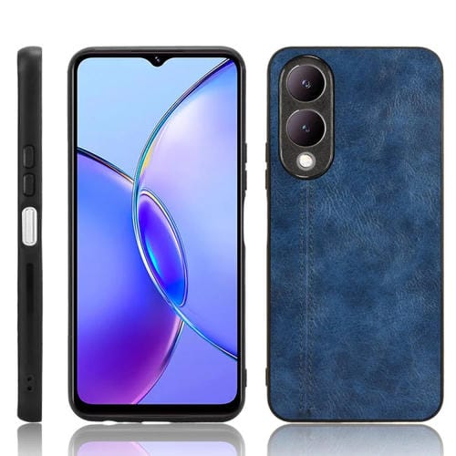 Para Vivo Y17S 4G Funda para Teléfono con Contraportada de Costura con Patrón de Vaca Global (Azul)