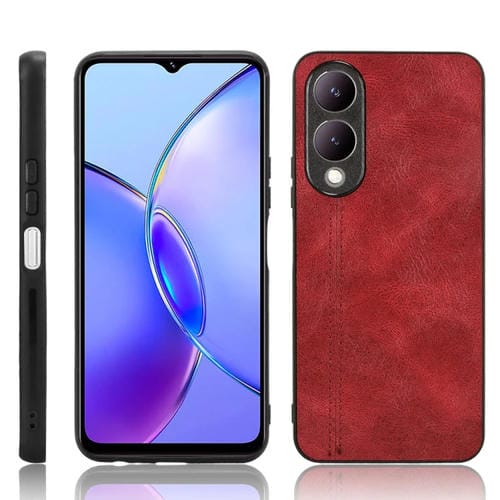 Para Vivo Y17S 4G Funda para Teléfono con Contraportada de Costura con Patrón de Vaca Global (Rojo)