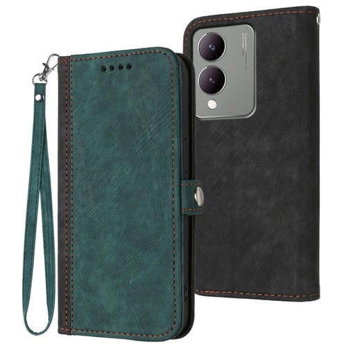 Para Vivo Y17S 4G Global / Y28 5G India Hebilla Lateral Doble Pliegue Correa de Mano Funda de Cuero para Teléfono (Verde Oscuro)