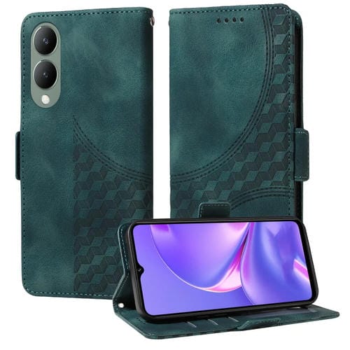 Para Vivo Y17S / Y36I 5G Funda para Teléfono de Cuero Estrellado con Rombo En Relieve (Verde)