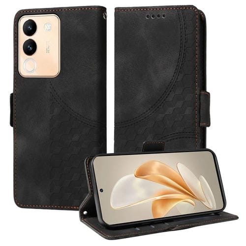 Para Vivo Y200 / V29E Funda para Teléfono de Cuero Estrellado con Rombos En Relieve Global (Negro)